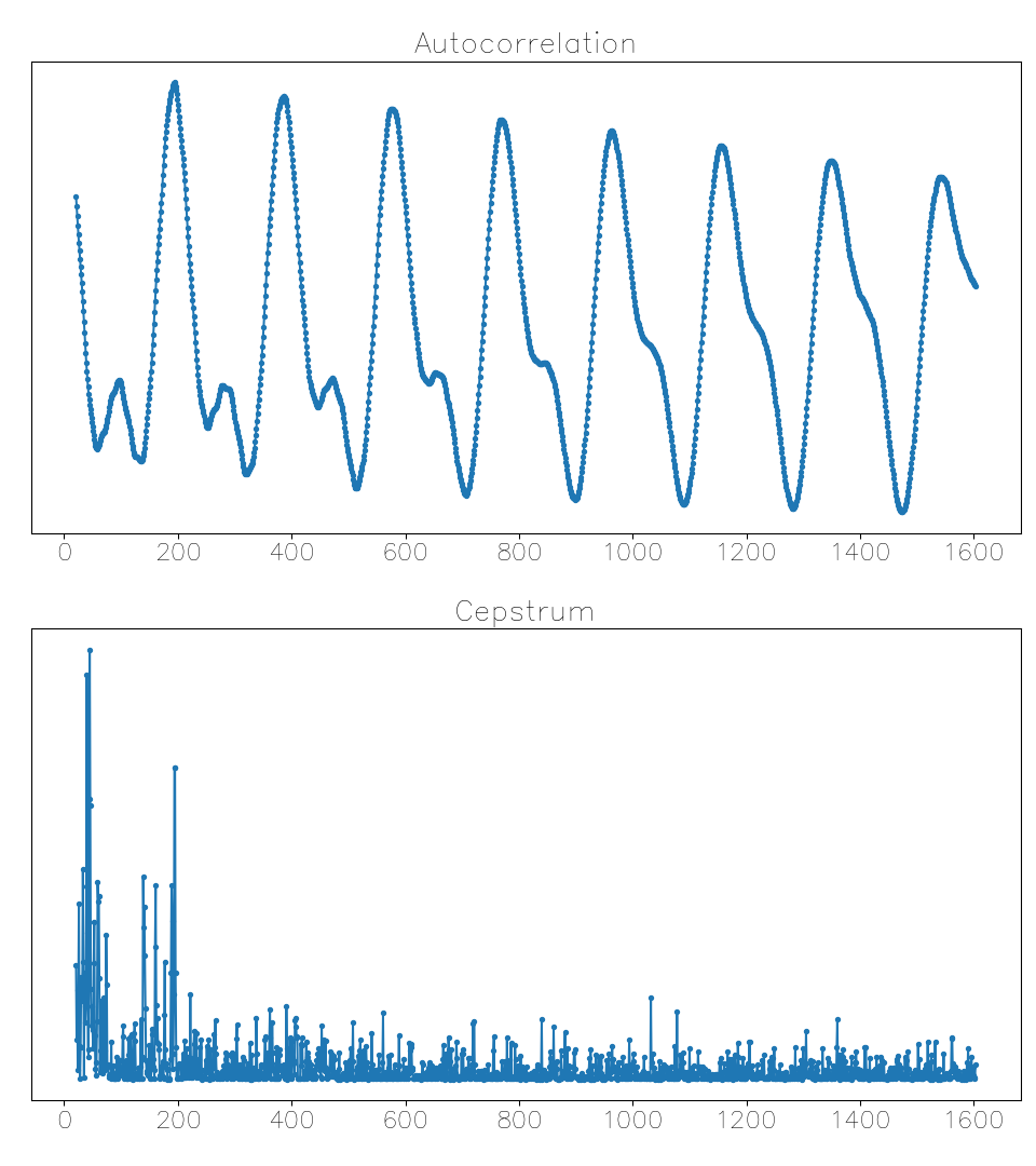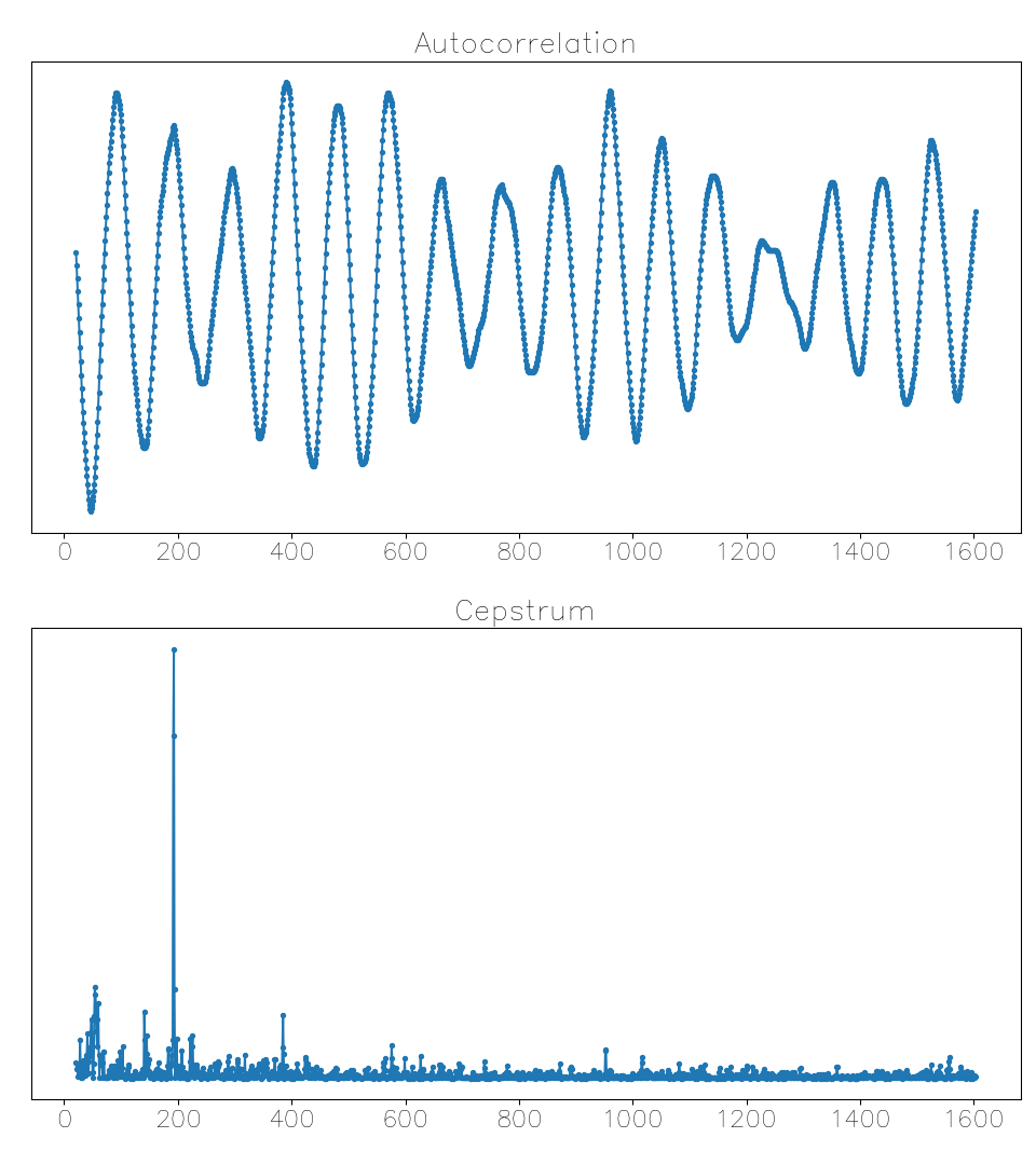 Here’s a case where interpreting the autocorrelation is very difficult, but the cepstrum gets it correct: