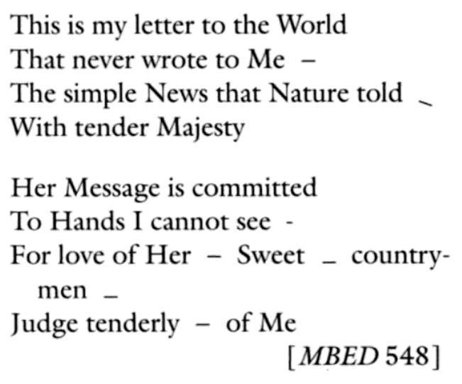 There really are a lot of dashes in Dickinson’s poems; often they end a poem, giving an impression that the poem continues through time, never concluding.