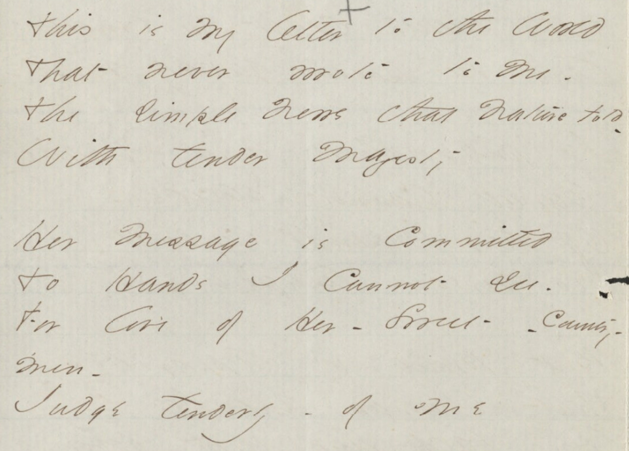 I must be clear that despite using the Houghton Library’s scans, I am not taking Harvard’s side in the sordid affair which has been diminishing faith in humanity for over a century, and in which Harvard University Press is today the chief villain. HUP claims copyright on the text of all poems and letters written by Emily Dickinson.